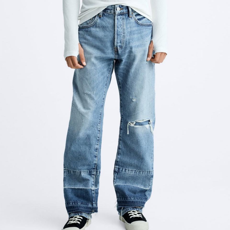 แพทเทิร์น:กางเกงยีนส์ขาตรง ชายเสื้อแบบเลเยอร์ไม่สม่ำเสมอ