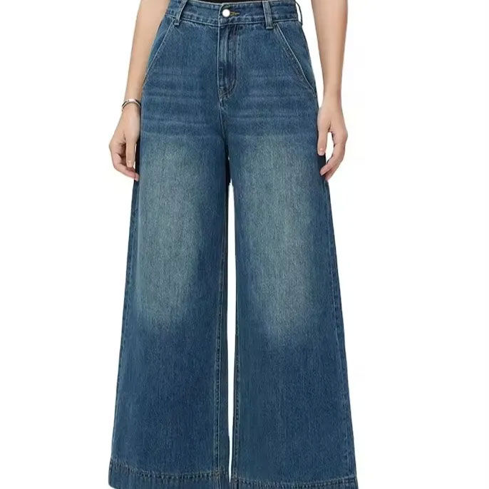 กางเกงยีนส์ขาตรงเอวกลางมีกระดุมสำหรับผู้หญิงกางเกงยีนส์ลำลองแนวสตรีทแฟชั่นใหม่