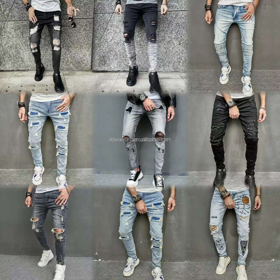 Wholesale New Fashionable Men's Tight Cargo Jeans Denim Combat Bike Hand Pocket Elastic Black Work Pants Men's Jeans