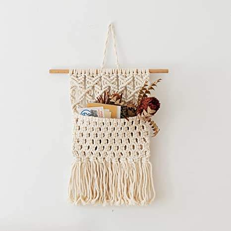 Boho Macrame ชั้นวางนิตยสารตกแต่งและที่ใส่หนังสือสำหรับตกแต่ง