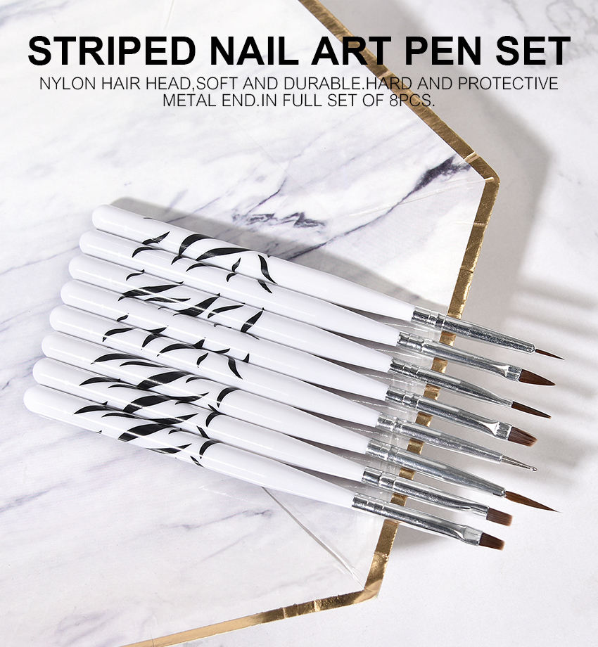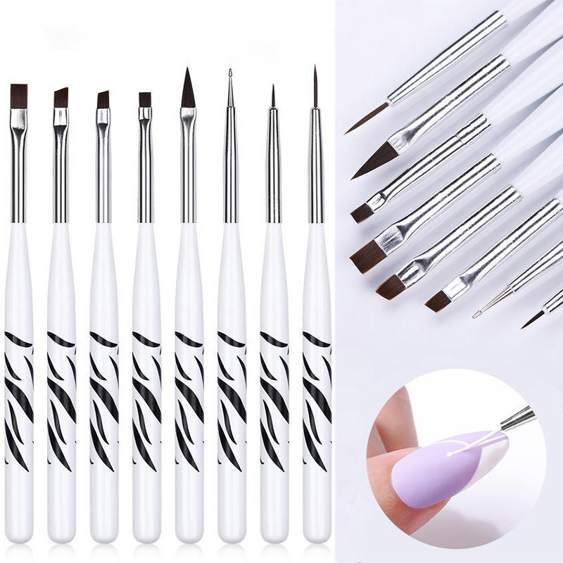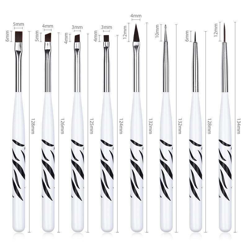 ชุดทำเล็บลายม้าลายสไตล์ญี่ปุ่น8ชิ้นปากกาเขียนขอบเล็บทำจากไนลอน