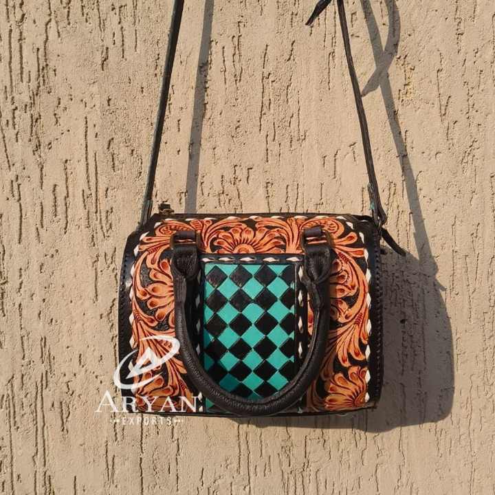 Product name:Hand Tooled Checkered Leather Speedy Duffel Bag