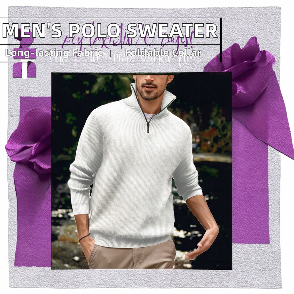 เสื้อสเวตเตอร์แขนยาวคอเต่ามีซิปสำหรับผู้ชายเสื้อโปโลแขนยาวลายแนวตั้งกันรอยยับสำหรับฤดูใบไม้ร่วง