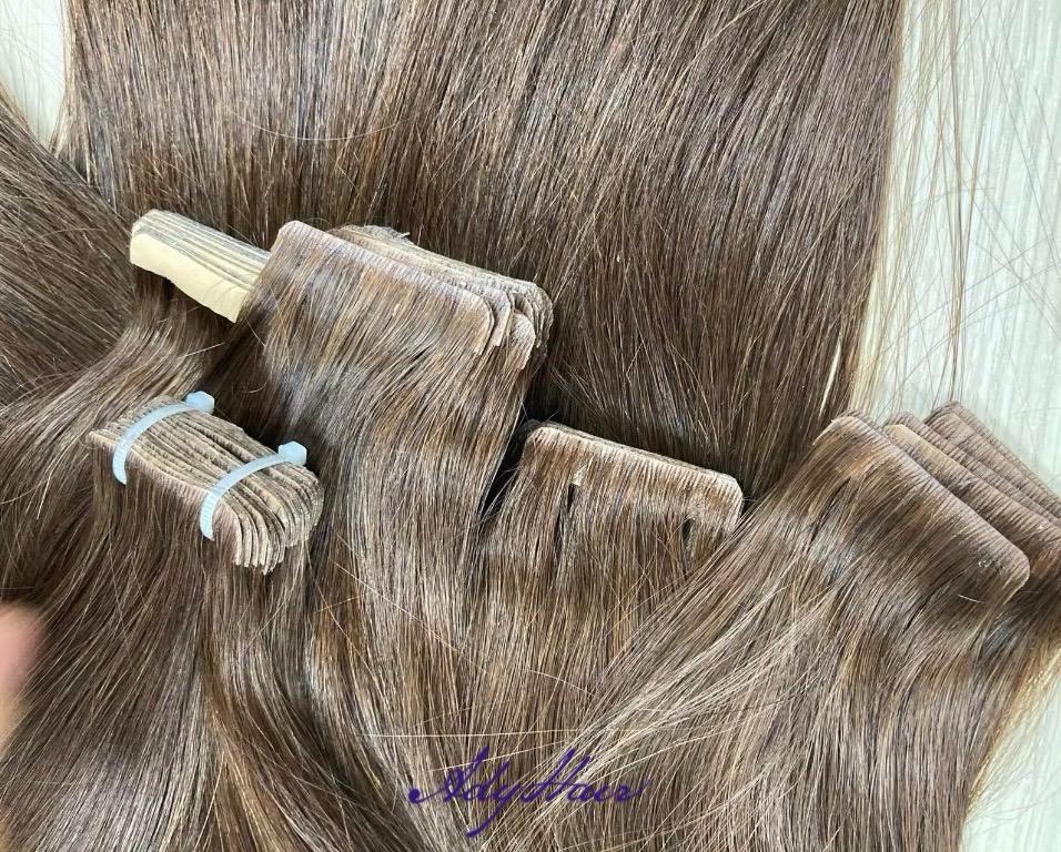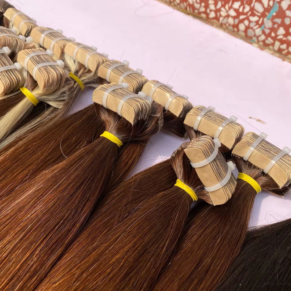 เทปต่อผมมนุษย์แบบไร้รอยต่อแบบไร้รอยต่อแบบฉีดจัดแนวหนังกำพร้าผมมนุษย์เวียดนามที่มองไม่เห็นสไตล์คลื่นธรรมชาติ