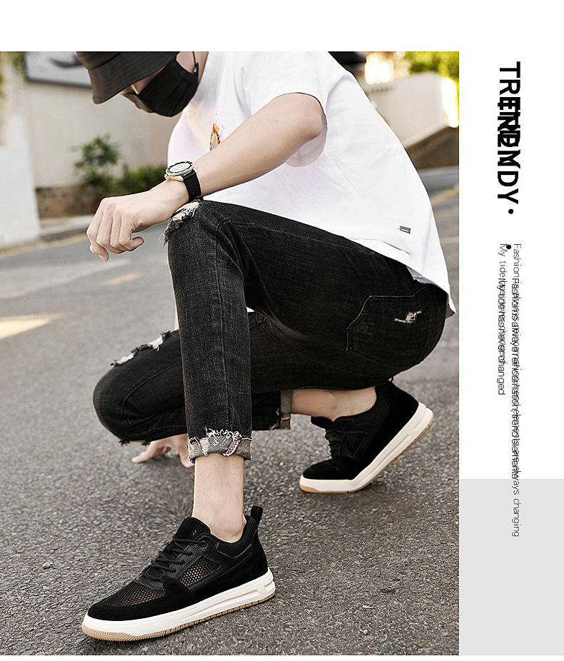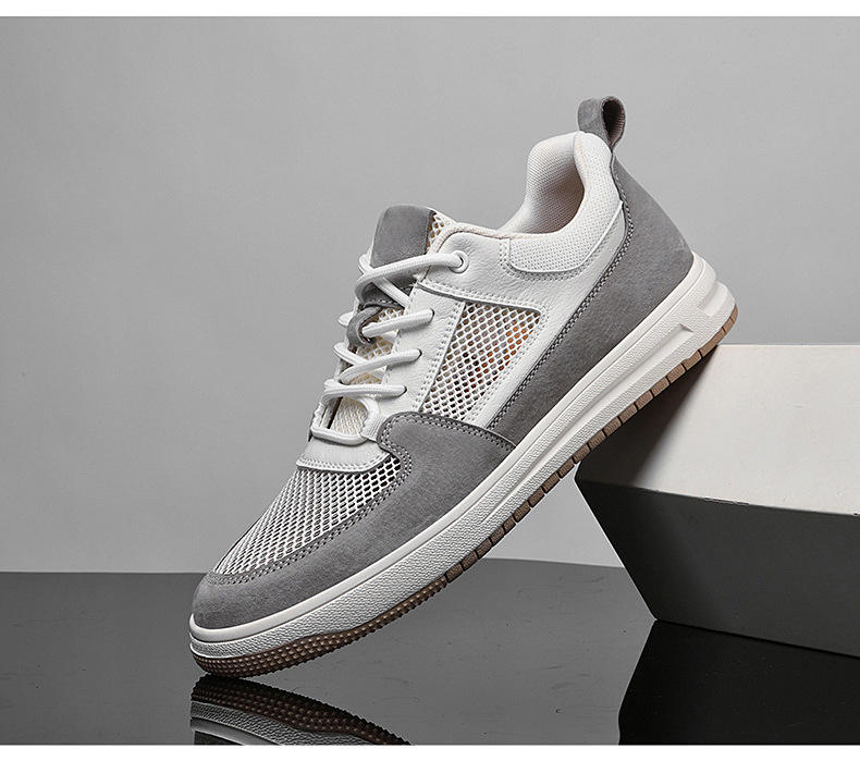 รองเท้าวิ่งผู้ชายรุ่นใหม่ขายส่ง ผ้าตาข่ายใส่สบายสำหรับฤดูร้อน สีขาว เพิ่มความสูง 8 ซม. สไตล์ลำลอง แฟชั่นอินเทรนด์ DASBAYLA