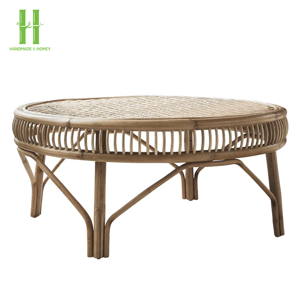 โต๊ะกาแฟหวายพร้อมกระจกทำจากหวายเฟอร์นิเจอร์ห้องนั่งเล่นทำจากธรรมชาติสินค้าใหม่จากเวียดนาม