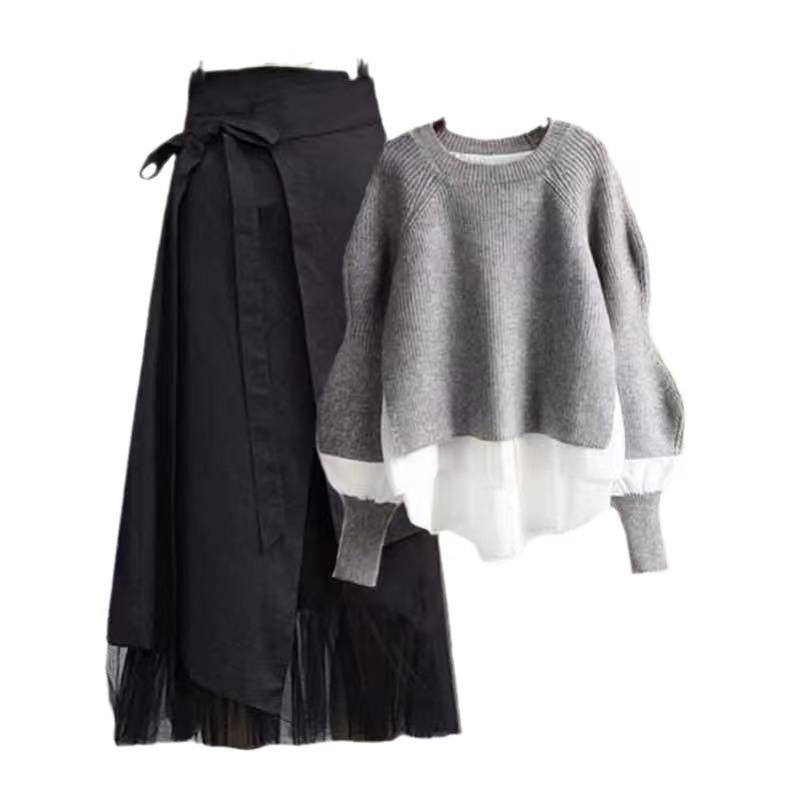 ชุดถักไหมพรมใหม่ขายส่ง เสื้อสเวตเตอร์คอโอ แขนทรงโคมไฟ อุ่นสบาย ดีไซน์หรูหรา ยาว ใส่สบาย