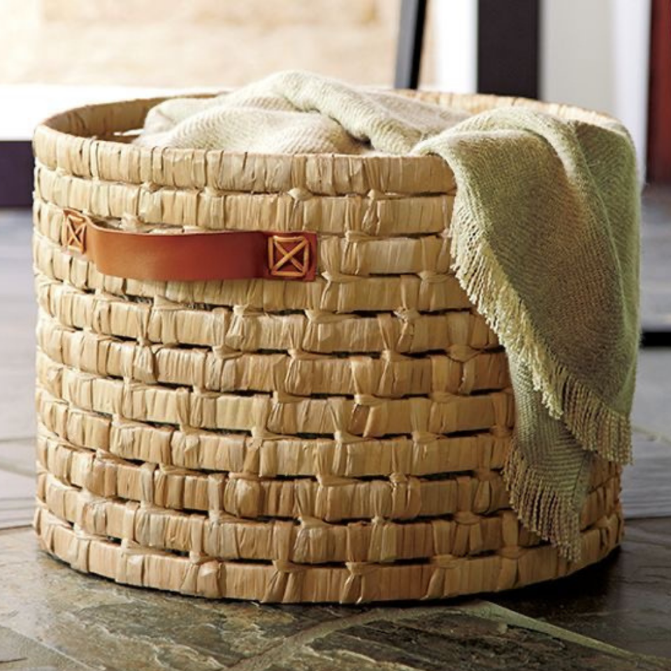 ตะกร้าเก็บผ้าหญ้าทะเลสานอเนกประสงค์ทรงสี่เหลี่ยมผืนผ้าทนทานผักตบชวาสำหรับห้องครัว