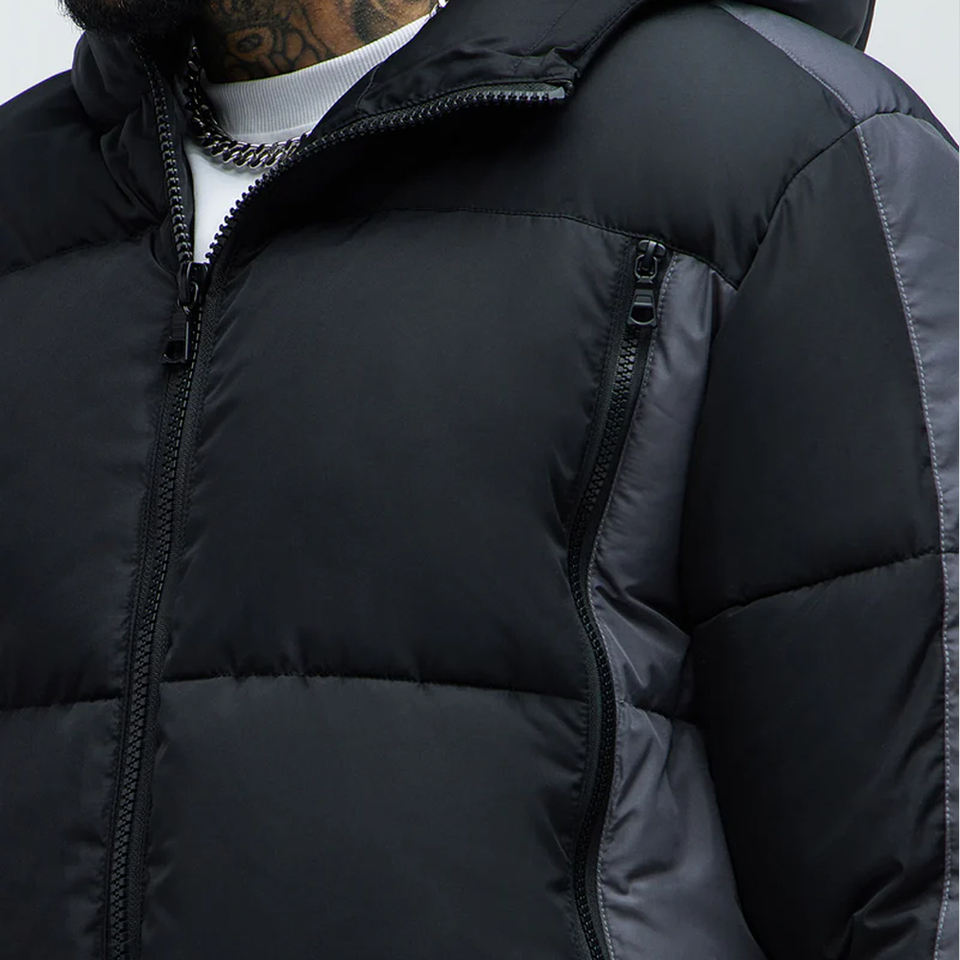 แจ็กเก็ตขนเป็ดสไตล์ใหม่สำหรับผู้ชายเสื้อแจ็คเก็ตขนเป็ดหนาอบอุ่นมีฮู้ดปรับแต่งโลโก้ได้ตามต้องการ