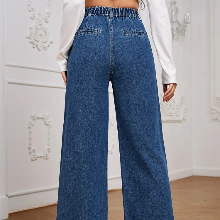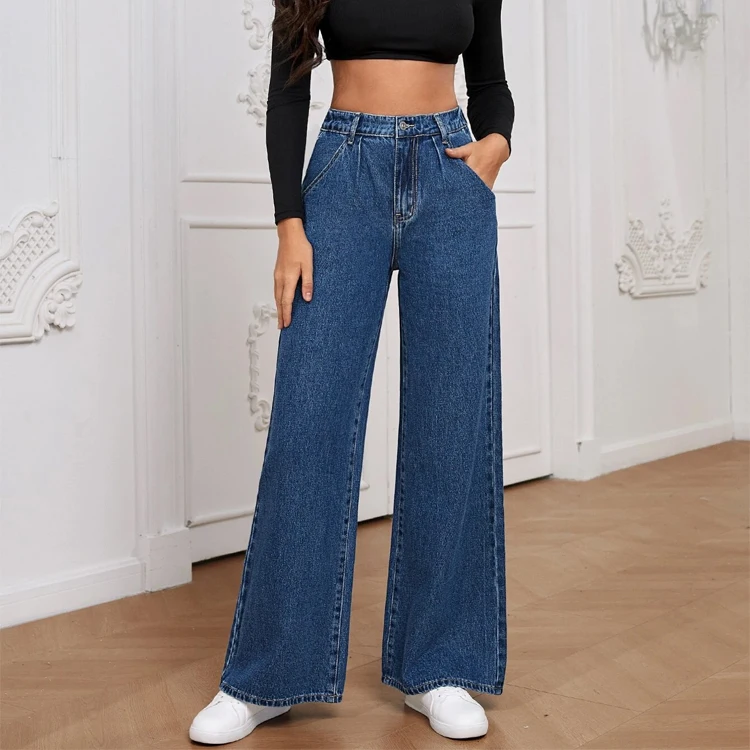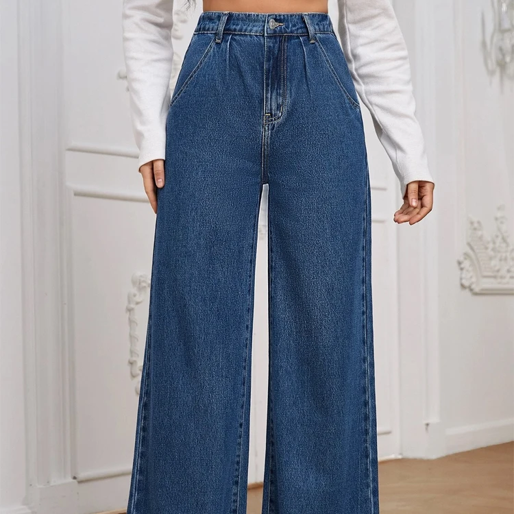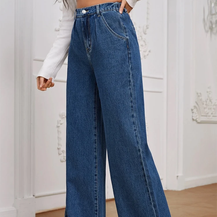 กางเกงยีนส์ขาตรงขากว้างทรงหลวมเอวสูงสไตล์สตรีทแวร์ผ้าแคนวาสสำหรับฤดูหนาวใหม่ฤดูร้อน