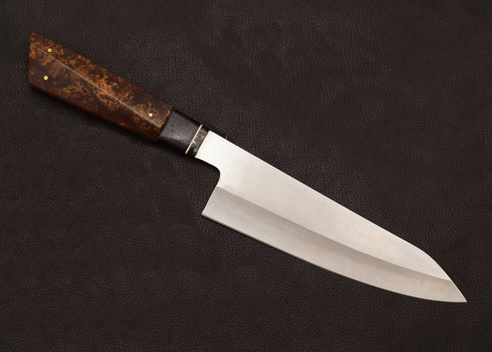 มีดเชฟสำหรับผู้ชายด้ามเหล็กทำด้วยมือมีดทำครัวทำด้วยมือพร้อมปลอกมีดเชฟไม้