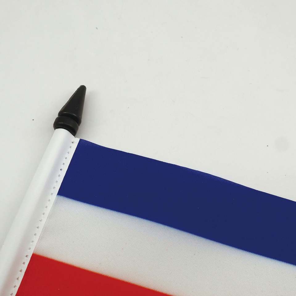 ธงคอสตาริกาแบบใหม่ขายส่ง ขนาด 14x21 ซม. พร้อมฐานตั้งสำหรับตกแต่งโต๊ะทำงานหรือโต๊ะสำนักงาน
