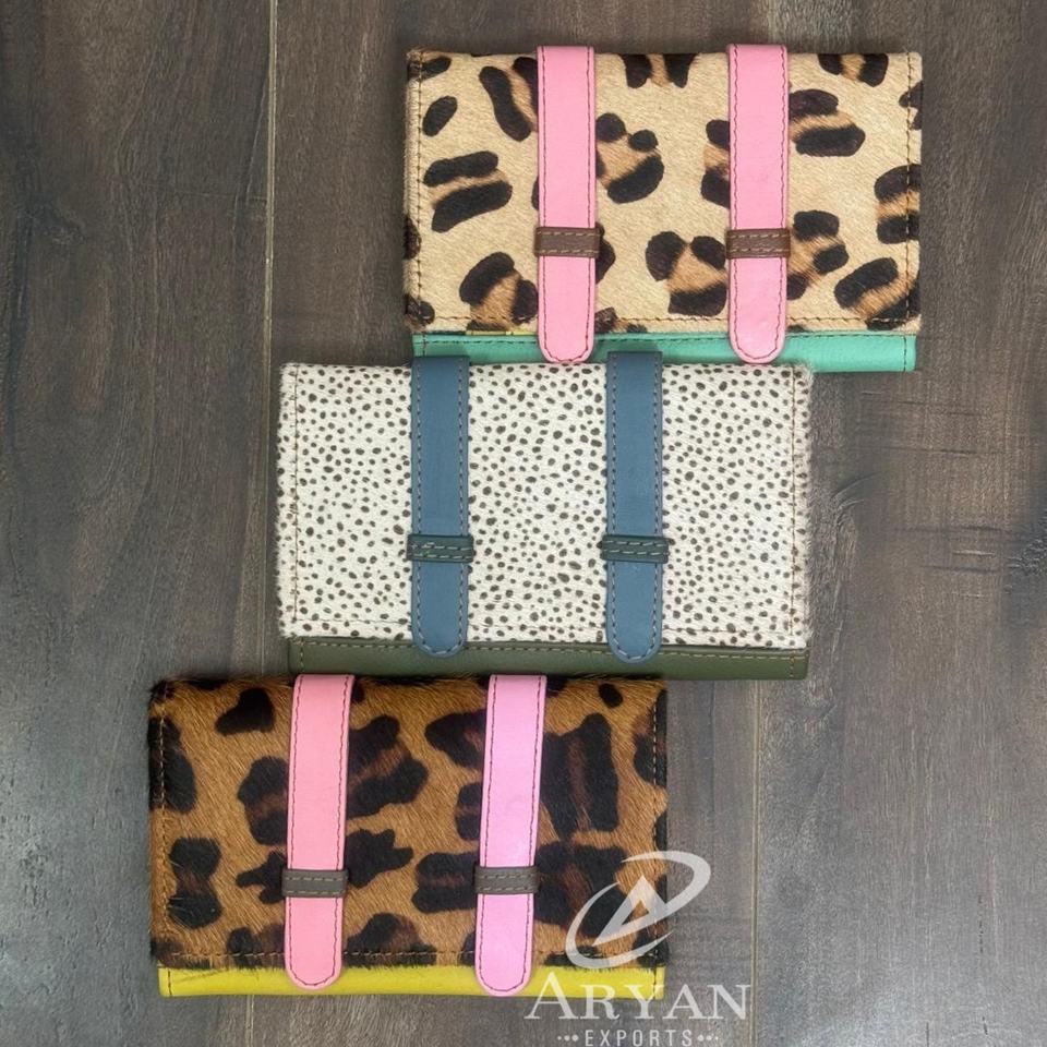 กระเป๋าคลัทช์ใส่เงินแบบยาวของผู้หญิงหนังรีไซเคิลหลายสีพิมพ์ลายสัตว์ขนาดใหญ่