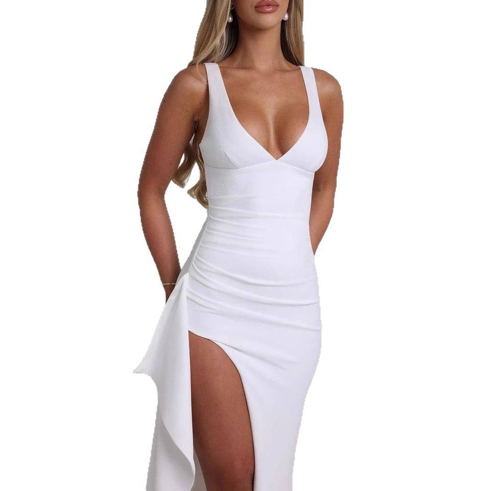ชุดเดรสผู้หญิงใหม่ขายส่ง เซ็กซี่ ผ่าสูง คอวีลึก ทรงเข้ารูป ดูดีมีระดับ แบบสายเดี่ยว สำหรับงานทางการ