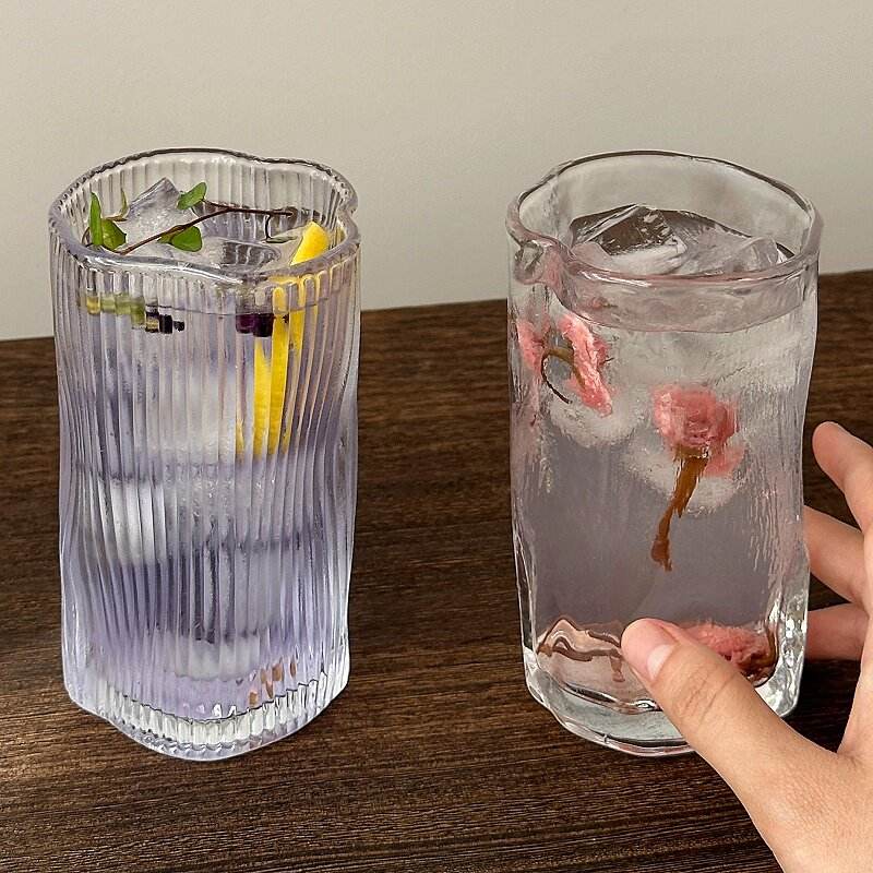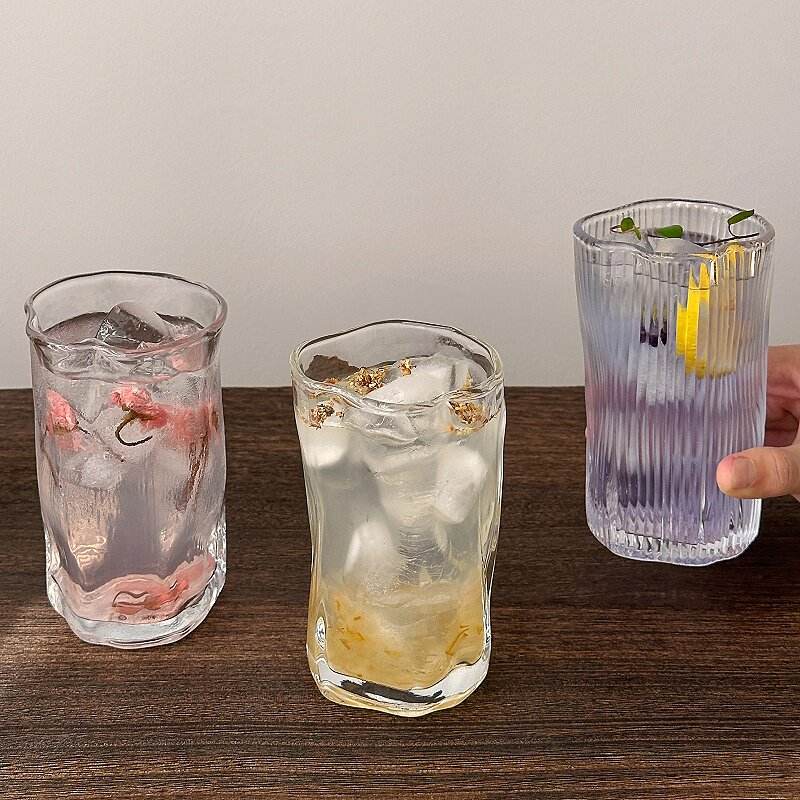 แก้วน้ำดีไซน์เฉพาะแบบขายส่ง แก้วน้ำฝนตก แก้วกาแฟลาเต้เย็น แก้วน้ำผลไม้และเครื่องดื่มเย็น สำหรับใช้ในบ้าน