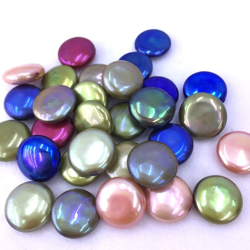 ขายส่งไม่มีหลุมทำเครื่องประดับ14-15มิลลิเมตร AAA ทั้งสองด้านเรียบหลายสีมุก