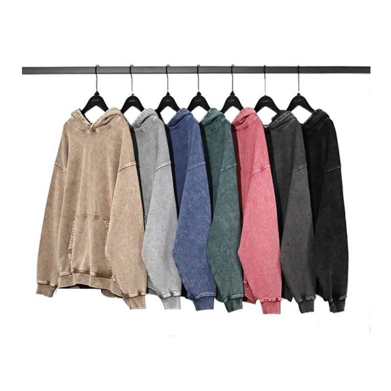เสื้อฮู้ดดี้ผ้าฝ้ายหนา 100% 400gsm แบบเฟรนช์เทอร์รี่ ไม่มีเชือกผูก ขายส่ง แบบสองชั้น ล้างสีสไตล์วินเทจ