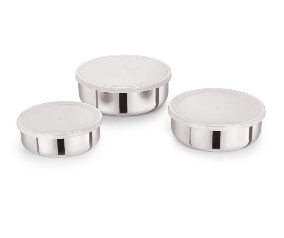ภาชนะเก็บอาหารสแตนเลสพร้อมฝาพลาสติก
