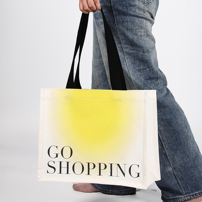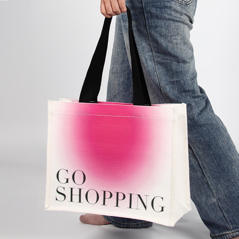 กระเป๋าผ้าแคนวาสพับได้แบบขายส่ง เป็นมิตรกับสิ่งแวดล้อม สีไล่ระดับ พิมพ์โลโก้ตามสั่ง สำหรับบรรจุเสื้อผ้า ถุงเท้า และสินค้าอื่นๆ