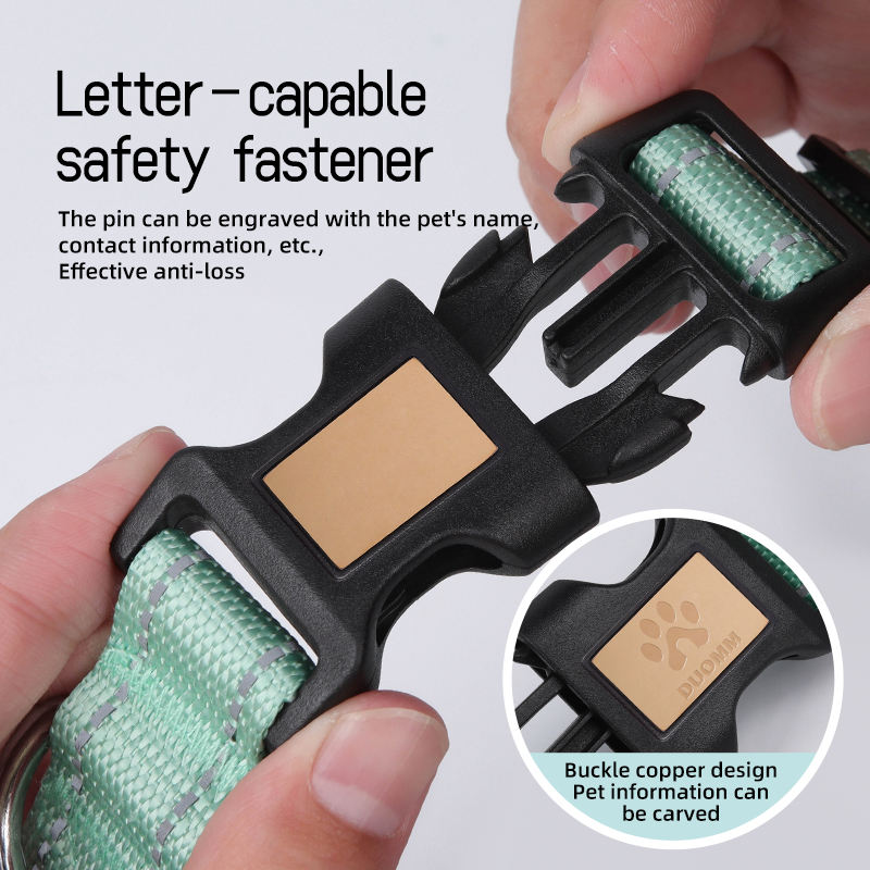 ปลอกคอสุนัขแถบสะท้อนแสงทำจากไนลอนออกแบบโลโก้ได้ตามต้องการ