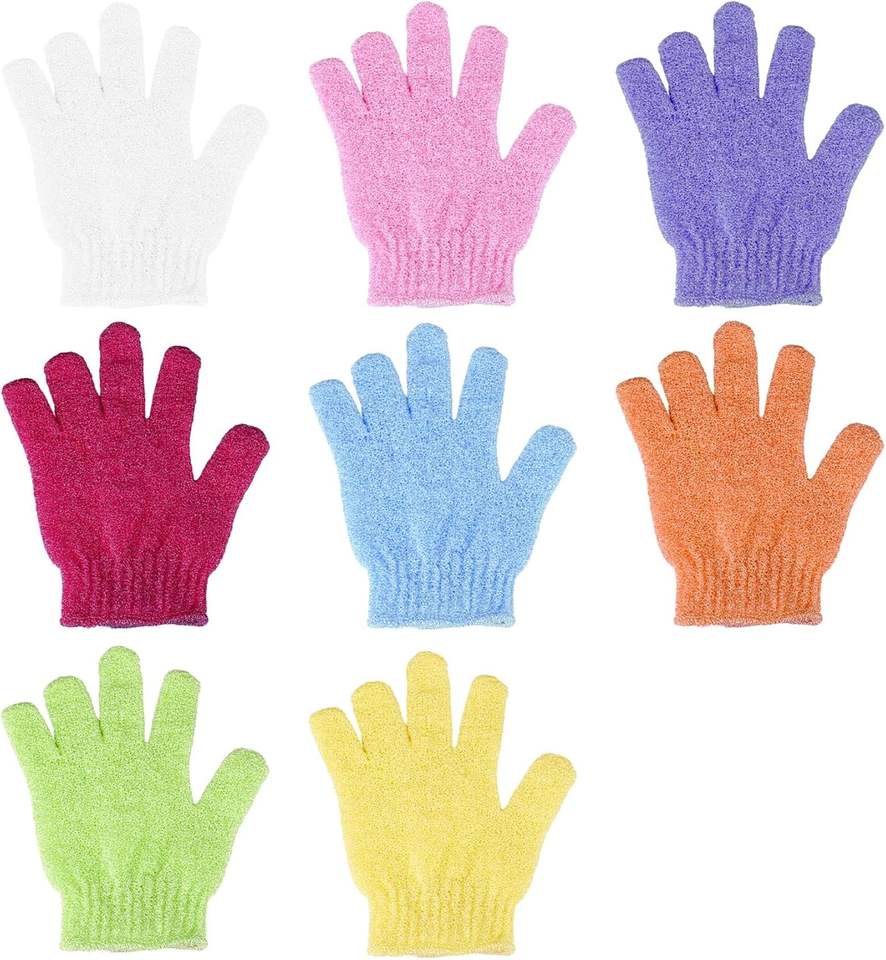 ถุงมืออาบน้ำไนลอนป่านปอกระเจาสีพื้นสำหรับขายส่ง ถุงมือขัดผิว ขจัดเซลล์ผิวที่ตายแล้ว ผ้าขัดตัวอาบน้ำแบบมีสายรัด
