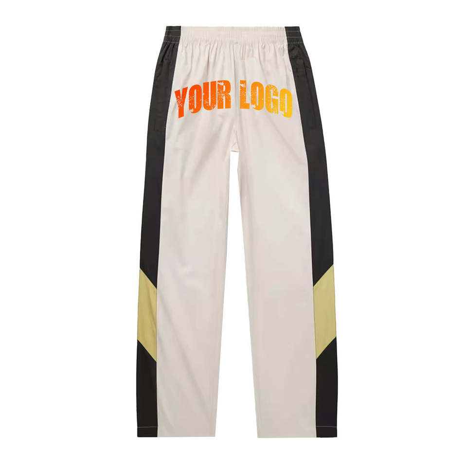กางเกงกันลมผ้าไนลอนสำหรับผู้ชายกางเกงแนวสตรีทผ้าโพลีเอสเตอร์กันยับมีกระเป๋าสีบล็อกมีกระเป๋า