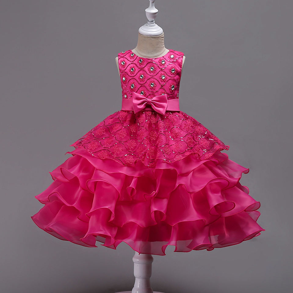 ชุดเดรสเจ้าหญิงลูกไม้ระบายสำหรับเด็กผู้หญิงไซส์ใหญ่ ขายส่งแบบ OEM ดีไซน์โบว์น่ารัก ชุดราตรีสำหรับเด็ก