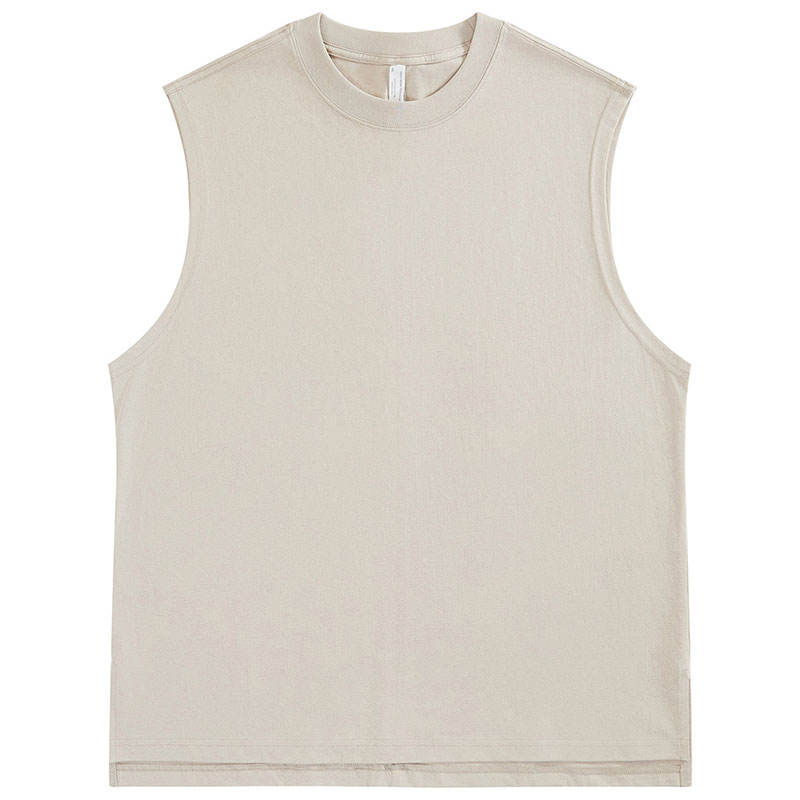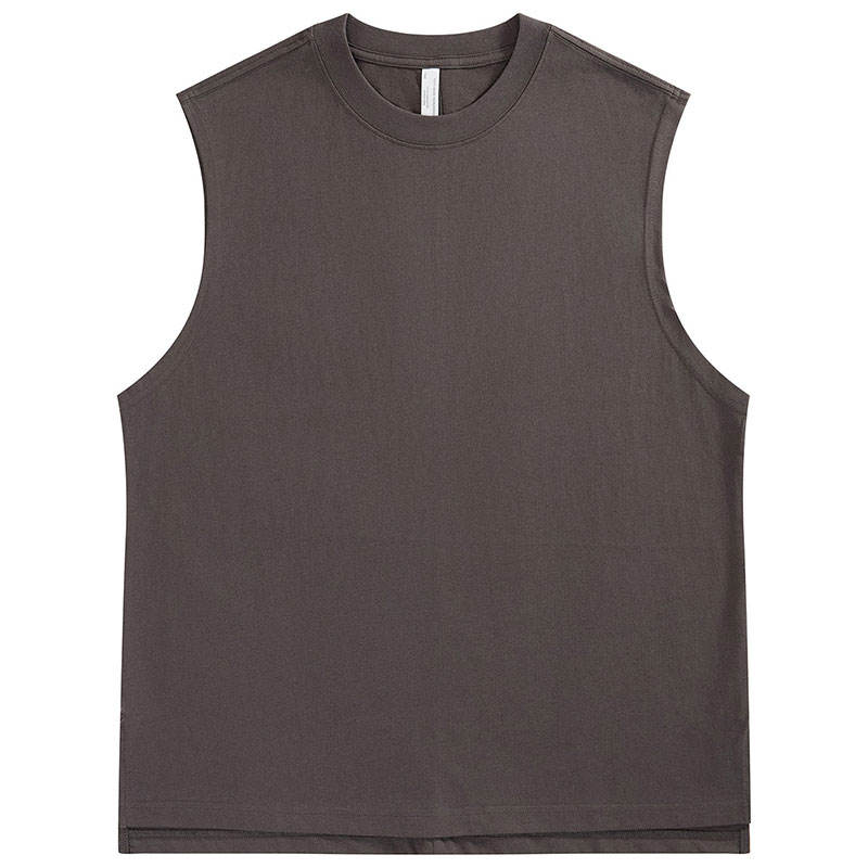 เสื้อกล้าม220GSM แขนกุดสำหรับผู้ชายเสื้อใส่ไปยิมฟิตเนสโอเวอร์ไซส์ผ้าคอตตอน100% ออกแบบโลโก้ได้ตามต้องการ