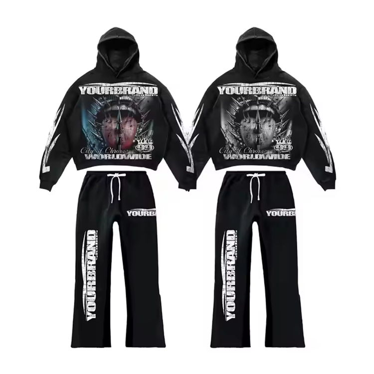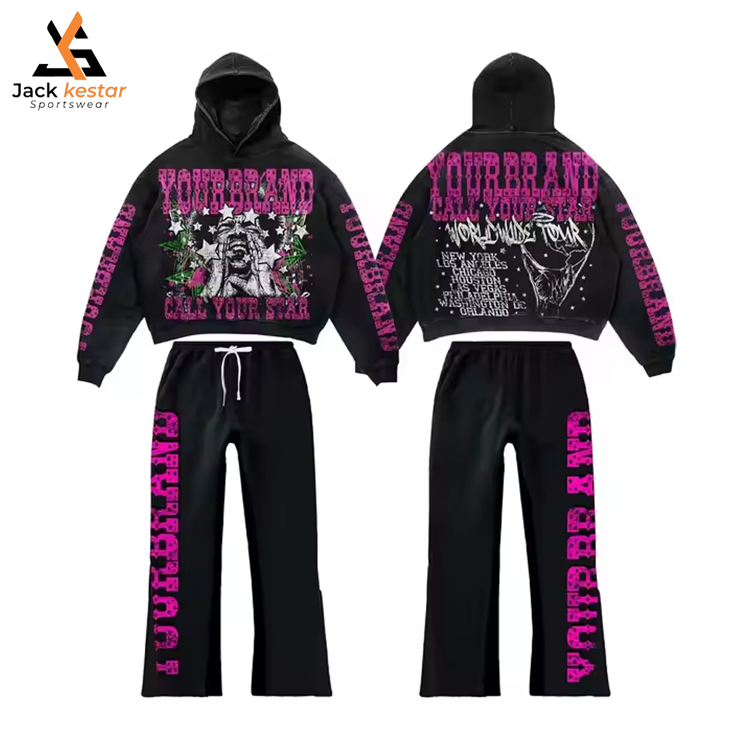 ชุดวอร์มผู้หญิงไซส์ใหญ่แบบขายส่ง OEM รับทำโลโก้ ผ้าฝ้ายระบายอากาศ ชุดออกกำลังกายแบบโอเวอร์ไซส์ เสื้อฮู้ดสีพลัมแต่งขอบ ชุดสองชิ้น