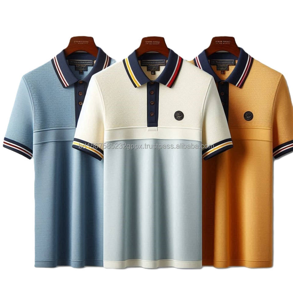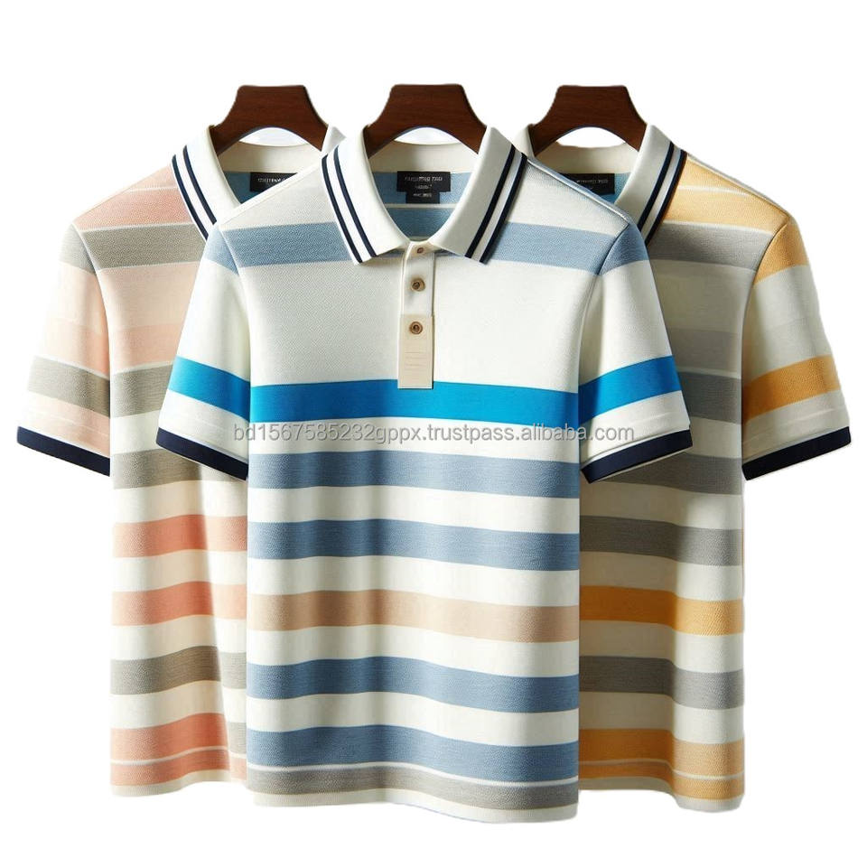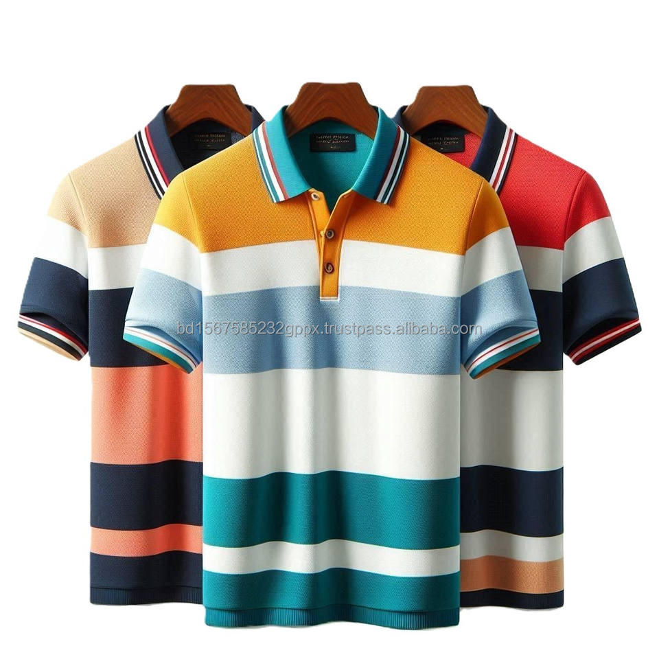 เสื้อโปโลปักลายโลโก้ตามสั่งเสื้อโปโลลายแถบถักสำหรับผู้ชายจากบังคลาเทศ