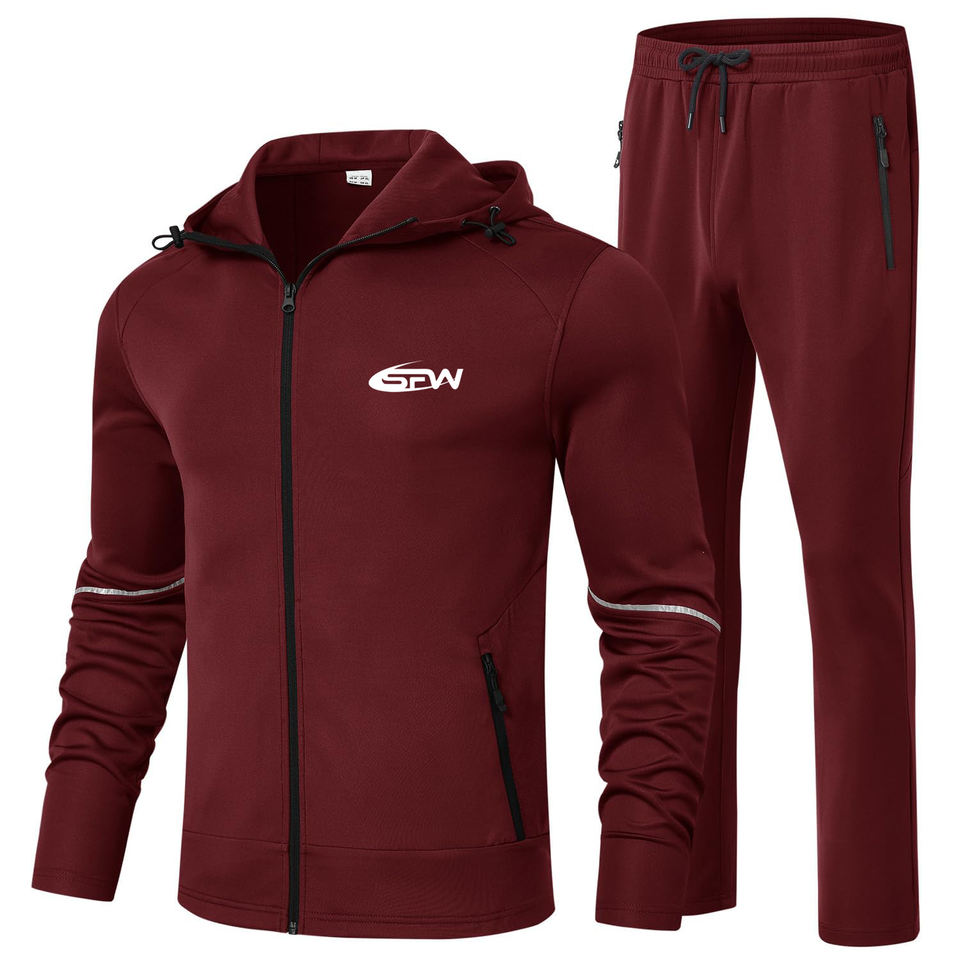 ชุดเสื้อกางเกงโพลีเอสเตอร์แห้งเร็วชุดฝึกระบายอากาศมีฮู้ดแบบลำลองโลโก้ตามสั่ง