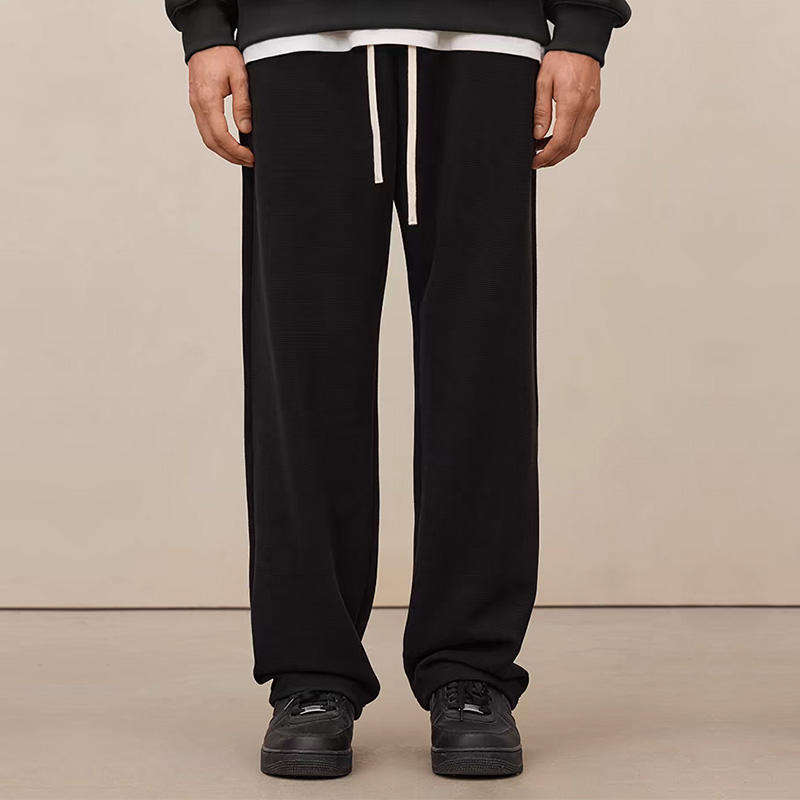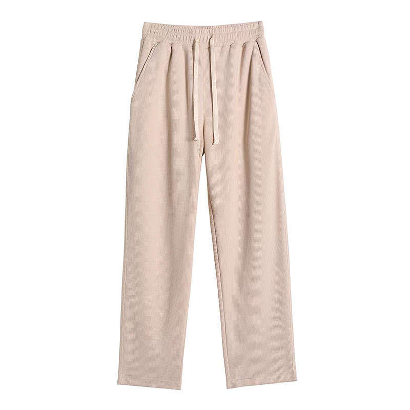 กางเกงวาฟเฟิลสำหรับผู้ชายกางเกงขากว้างทรงหลวมแบบมีเชือกผูกออกแบบโลโก้ได้ตามต้องการ