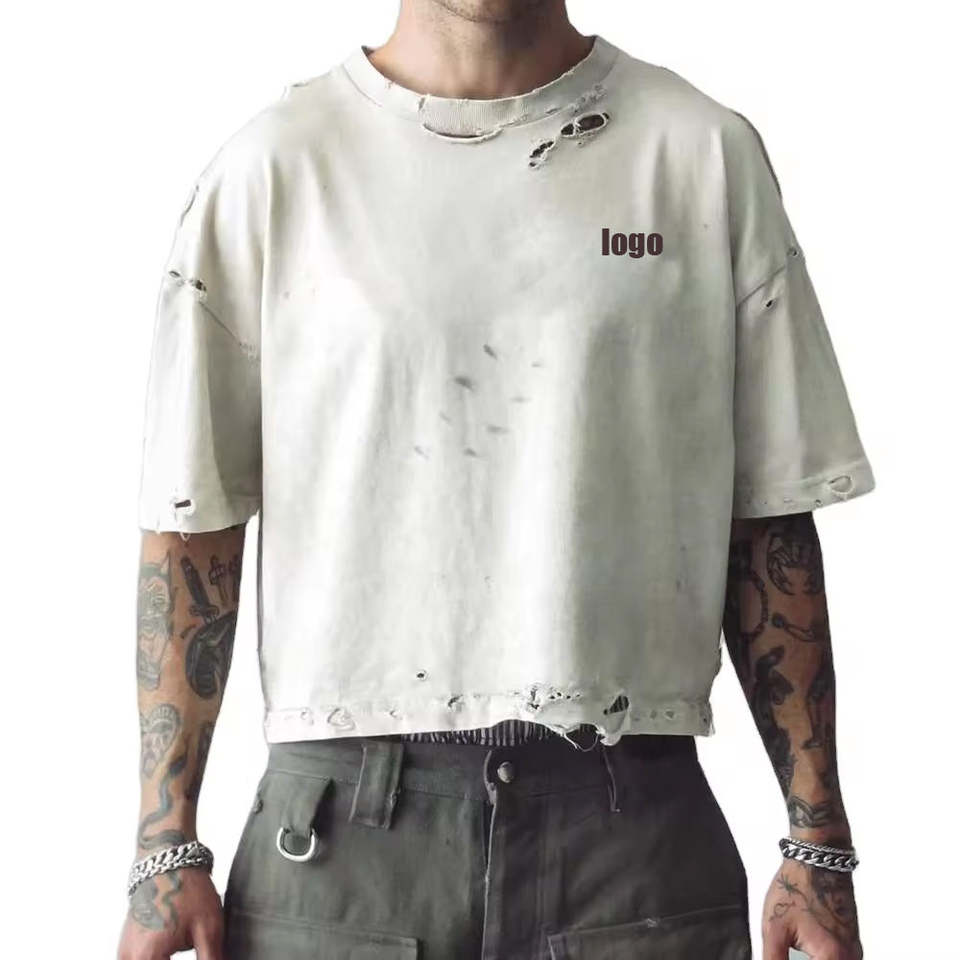 เสื้อยืดผ้าคอตตอน100% สำหรับผู้ชายเสื้อครอปโอเวอร์ไซส์สไตล์วินเทจฟอกสีออกแบบได้ตามต้องการ
