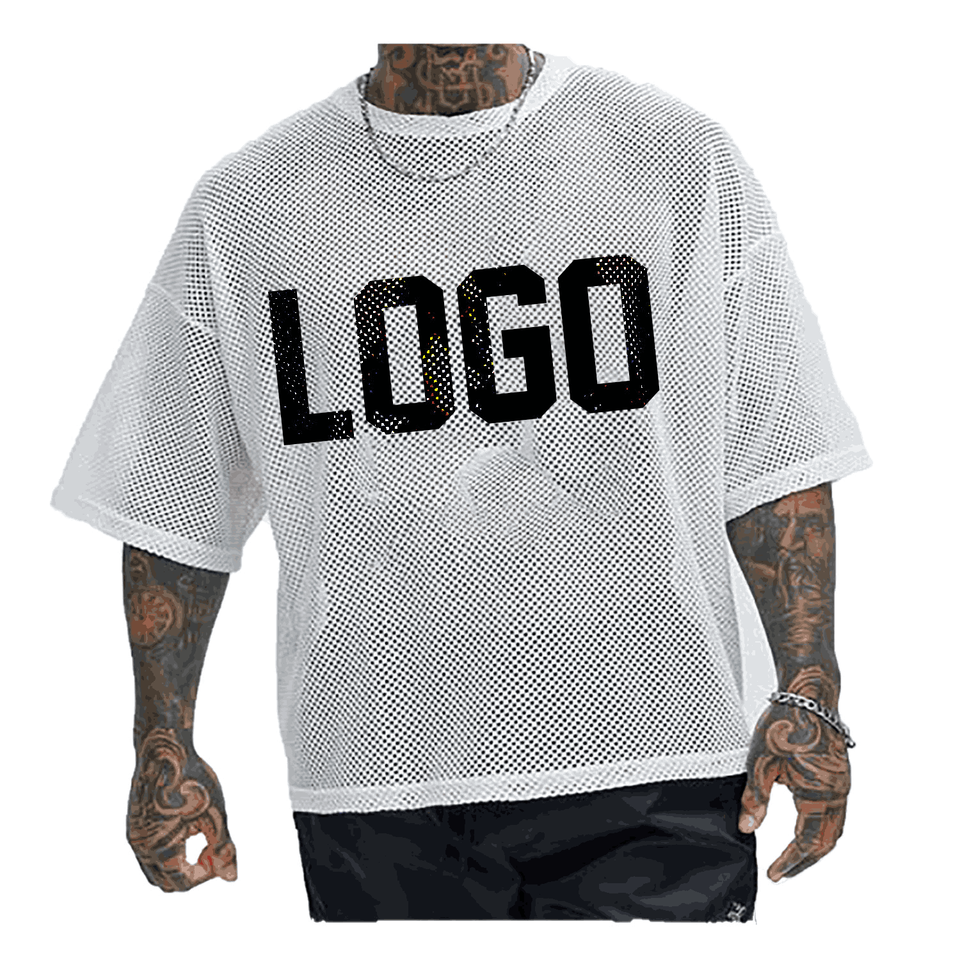 เสื้อยืดตาข่ายสำหรับผู้ชายเสื้อตาข่ายถักไซส์ใหญ่พิเศษพิมพ์ลายได้ตามต้องการ