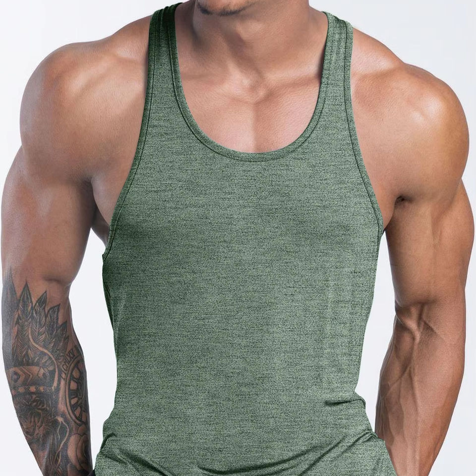 เสื้อกล้ามผู้ชายแบบสตริงเกอร์สั่งทำขายส่ง OEM ผ้าถักนุ่มป้องกันการเป็นขุย เหมาะสำหรับการเล่นกีฬา ฟิตเนส และออกกำลังกายในยิม