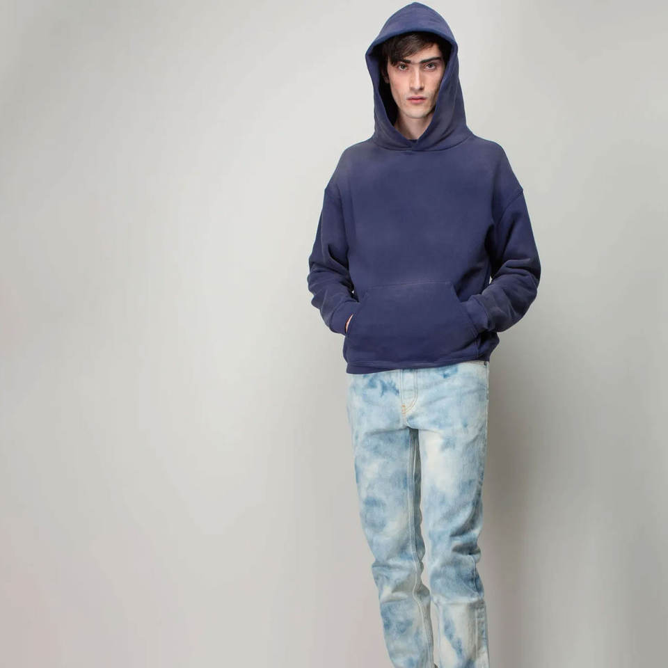 เสื้อมีฮู้ดผู้ชายแนวสตรีทแวร์เสื้อมีฮู้ดฟอกกรดสีเทาวินเทจเฮฟวี่เวทเฟรนช์เทอร์รี่