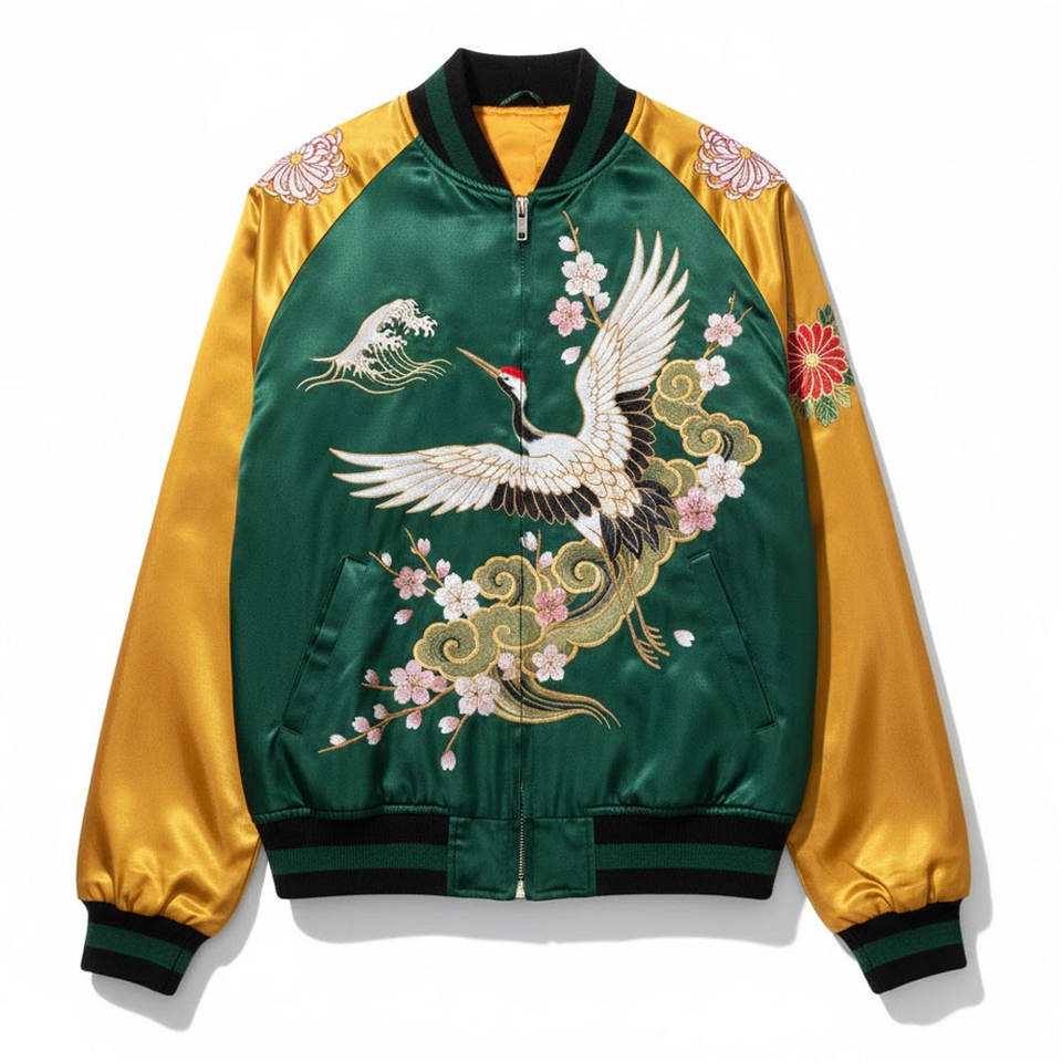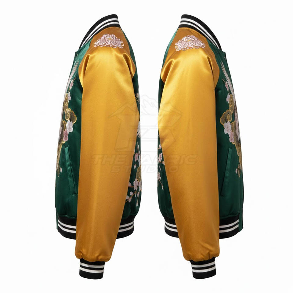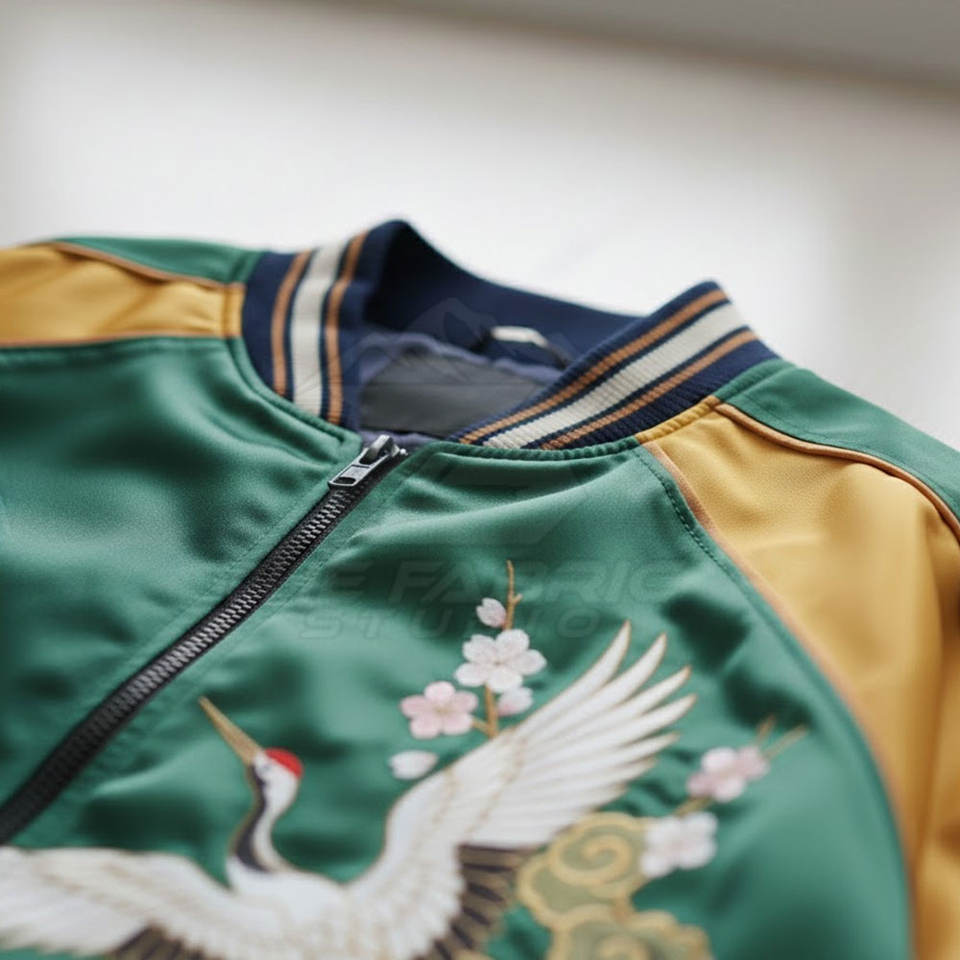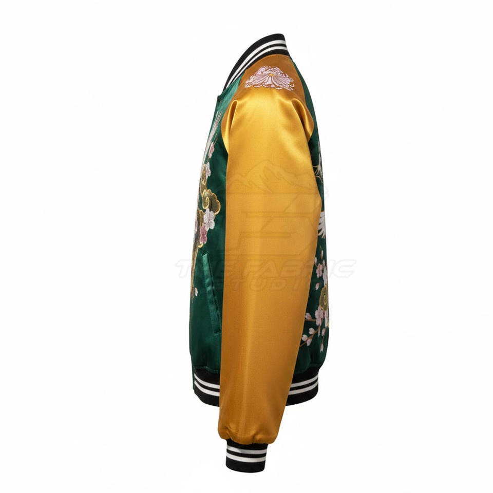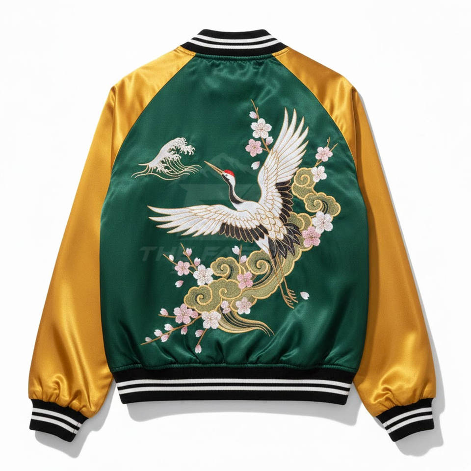 เสื้อแจ็คเก็ตซูกะจังผู้ชายสไตล์ฤดูหนาว งานปักทันสมัย ผลิตแบบ OEM ขายส่ง ผ้าซาตินเนื้อนุ่ม น้ำหนักเบา แฟชั่นเสื้อคลุม