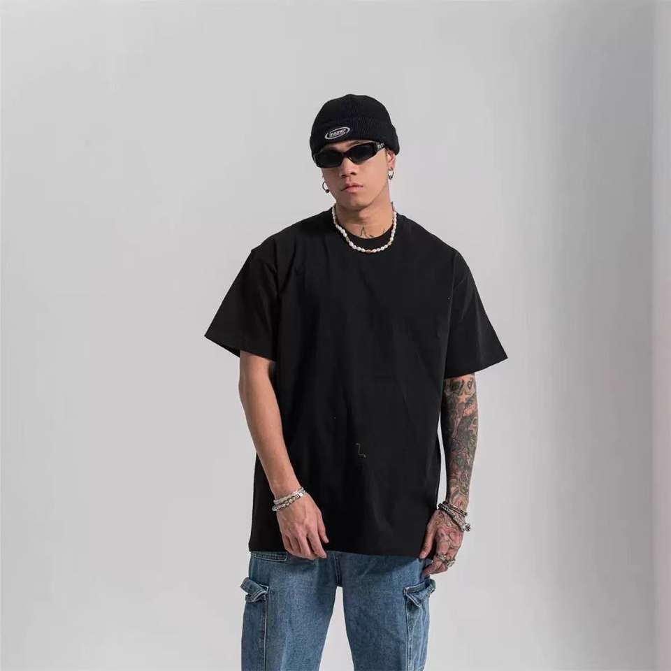 เสื้อยืดโอเวอร์ไซส์ผู้ชาย ผ้าคอตตอนหนา 300 กรัม สีดำ สไตล์สตรีทแวร์ ระบายอากาศได้ดี แห้งเร็ว เป็นมิตรกับสิ่งแวดล้อม รับผลิตแบบ OEM ขายส่ง