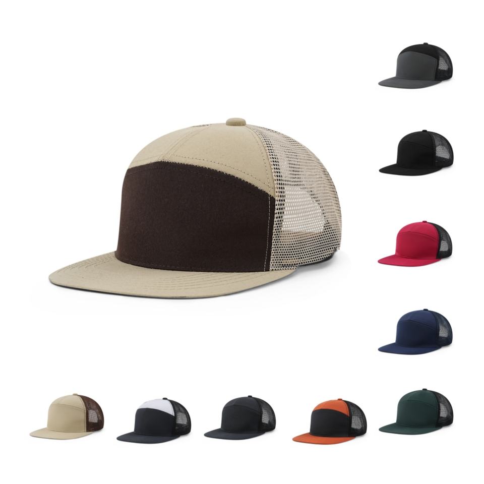 หมวกแก๊ปแบบสแนปแบ็ค 7 แผง คุณภาพสูง ผลิตตามสั่ง (OEM) สำหรับผู้ชาย รุ่น Richardson 168 หมวกตาข่ายแบบ Trucker