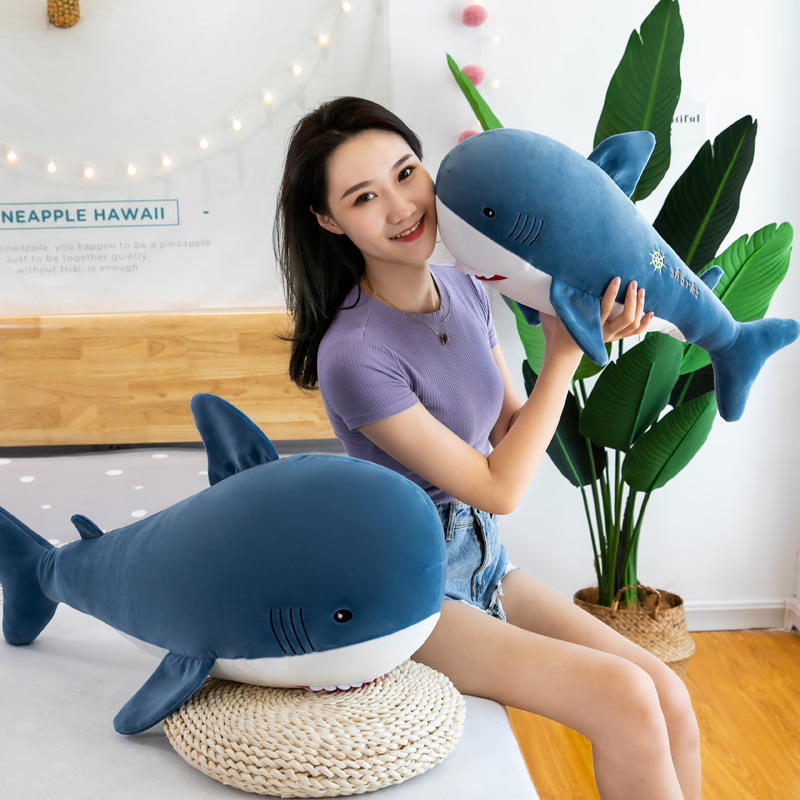 หมอนตุ๊กตาฉลามสุดสร้างสรรค์สำหรับเด็กผ้าคอตตอนเนื้อนุ่มน่ารักปักโลโก้ได้สูง10ซม. ทำจาก PP