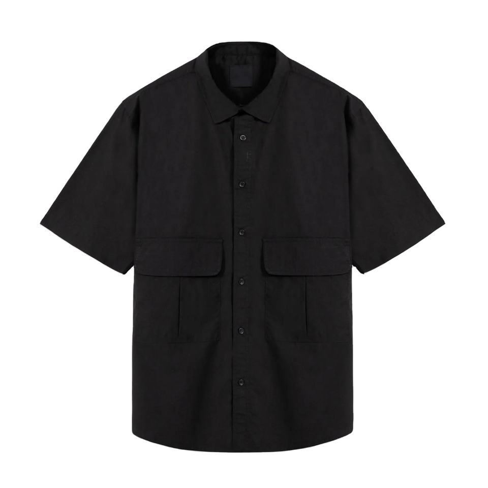 เสื้อเชิ้ตผ้าทอพร้อมกระเป๋าแบบปะที่ระบายอากาศได้