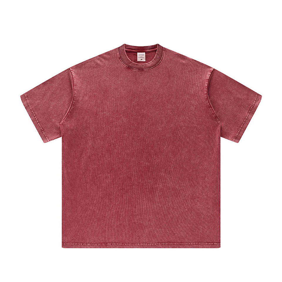 เสื้อยืดผู้ชายสไตล์เรโทรแบบขายส่ง OEM พิมพ์โลโก้ตามสั่ง ทรงหลวมโอเวอร์ไซส์ ผ้าถักน้ำหนัก 300gsm ผ้าฝ้าย 100% ซักแล้ว สไตล์สตรีทแวร์