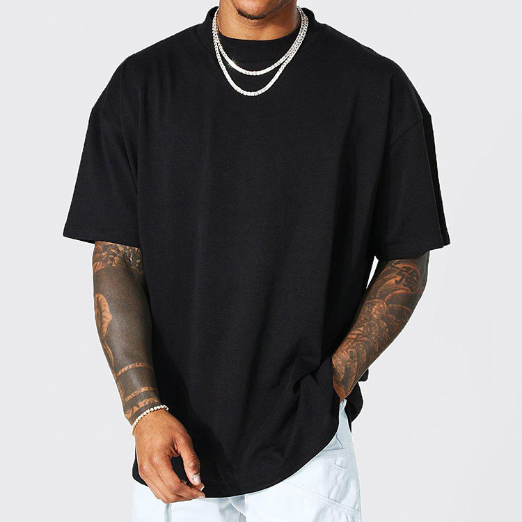 เสื้อยืดทรงบ็อกซี่สีดำแบบครอป ผลิตตามสั่งขายส่ง (OEM) ผ้าถักเนื้อนุ่ม ระบายอากาศได้ดี 100% ผ้าฝ้าย ดีไซน์เนอร์ ทรงปกติ สำหรับผู้ชาย