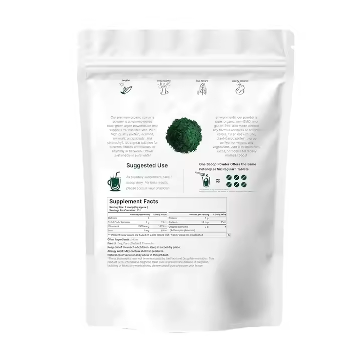 ผงสาหร่ายสไปรูลิน่าแบบออร์แกนิกอาหารเสริมโปรตีนและวิตามิน
