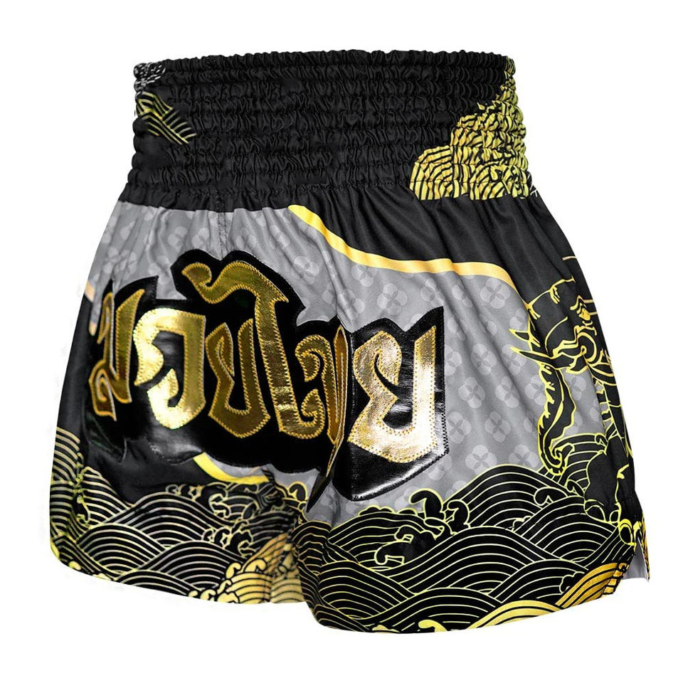 กางเกงขาสั้นชกมวยสำหรับผู้ชายและผู้หญิงกางเกงขาสั้นแบบไทยพิมพ์ลายซับลิเมชันออกแบบได้ตามต้องการ