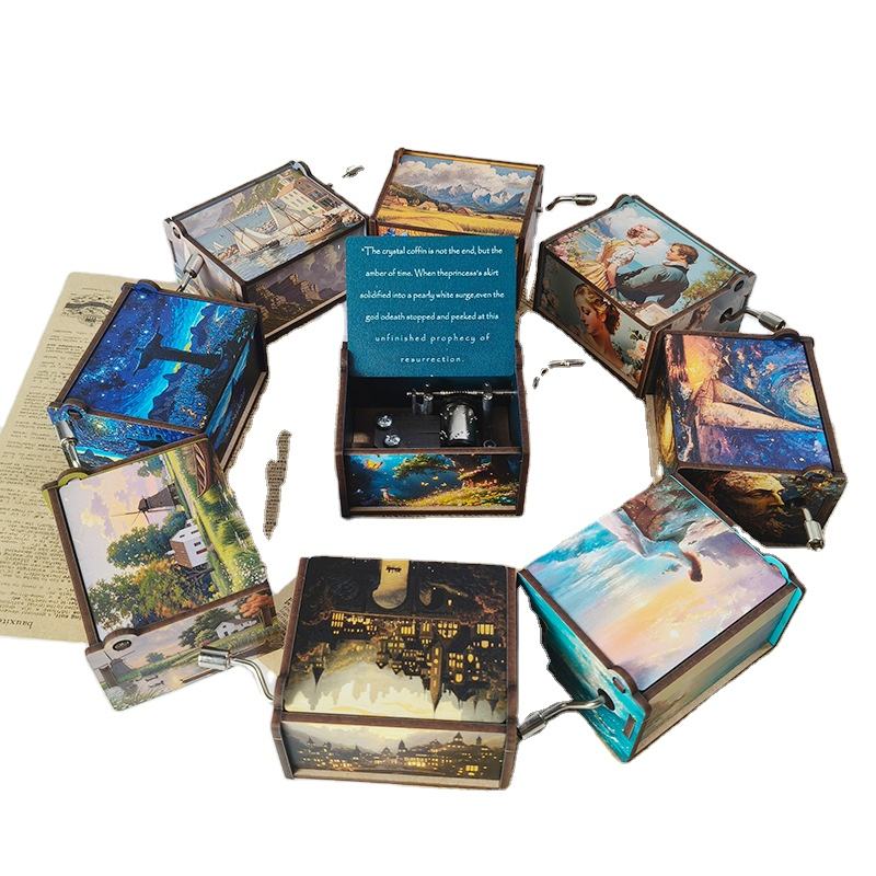 ขายส่ง/oemcreative กล่องดนตรีไม้แบบหมุนด้วยมือแรงบันดาลใจจากบาสซูนภาพวาดที่มีชื่อเสียงเครื่องประดับตกแต่ง