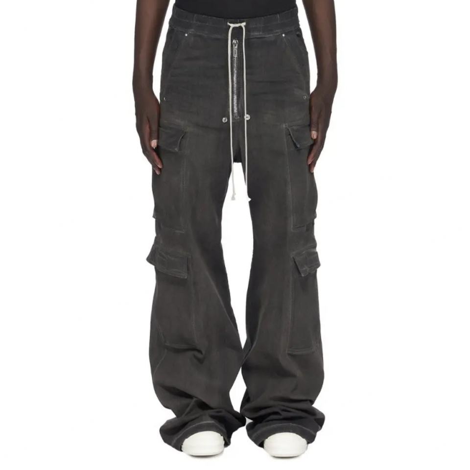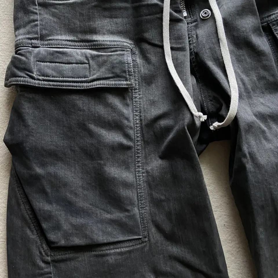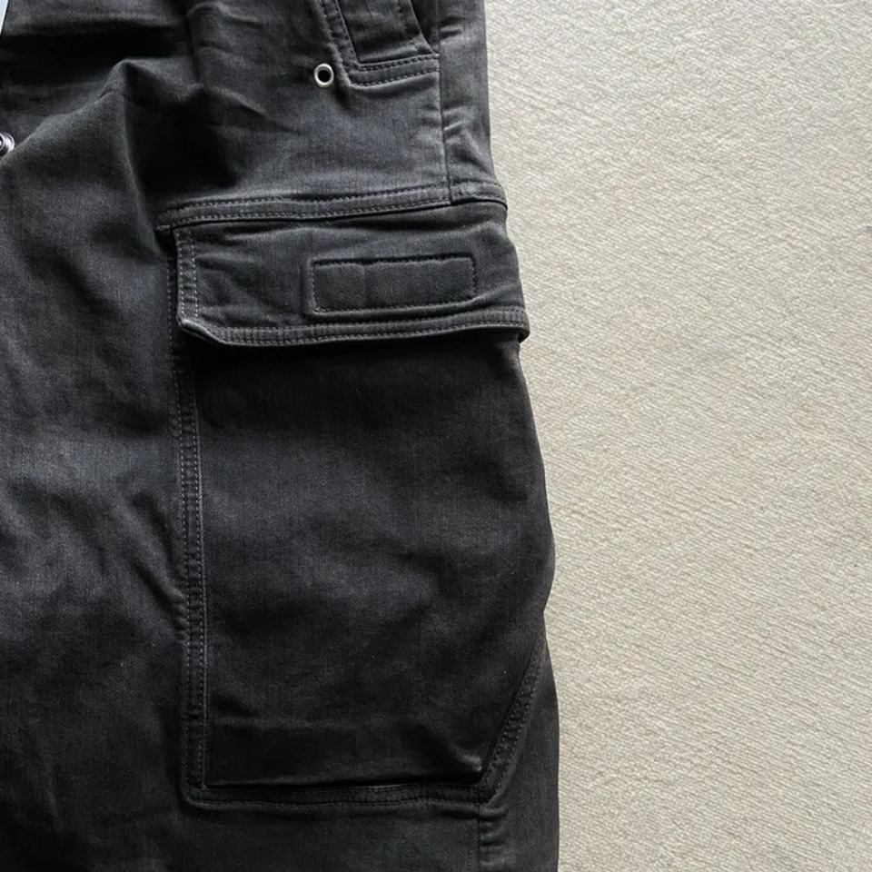 บริการขายส่ง OME กางเกงยีนส์แฟชั่นลำลองทรงคาร์โก้สองชั้น สีเข้มแบบฟอก ยืดได้ สำหรับผู้ชาย