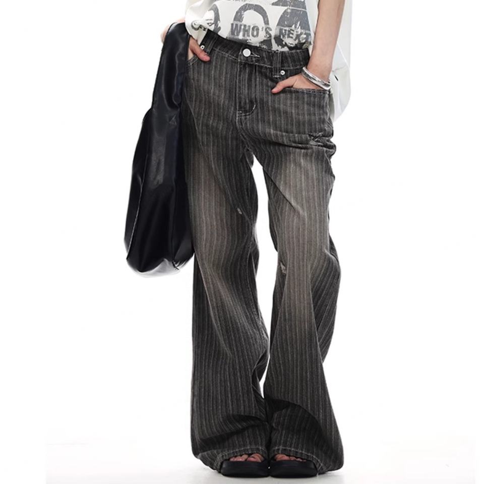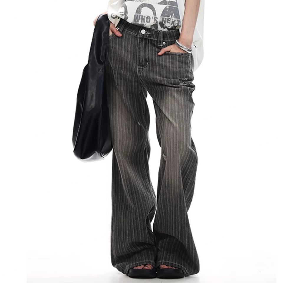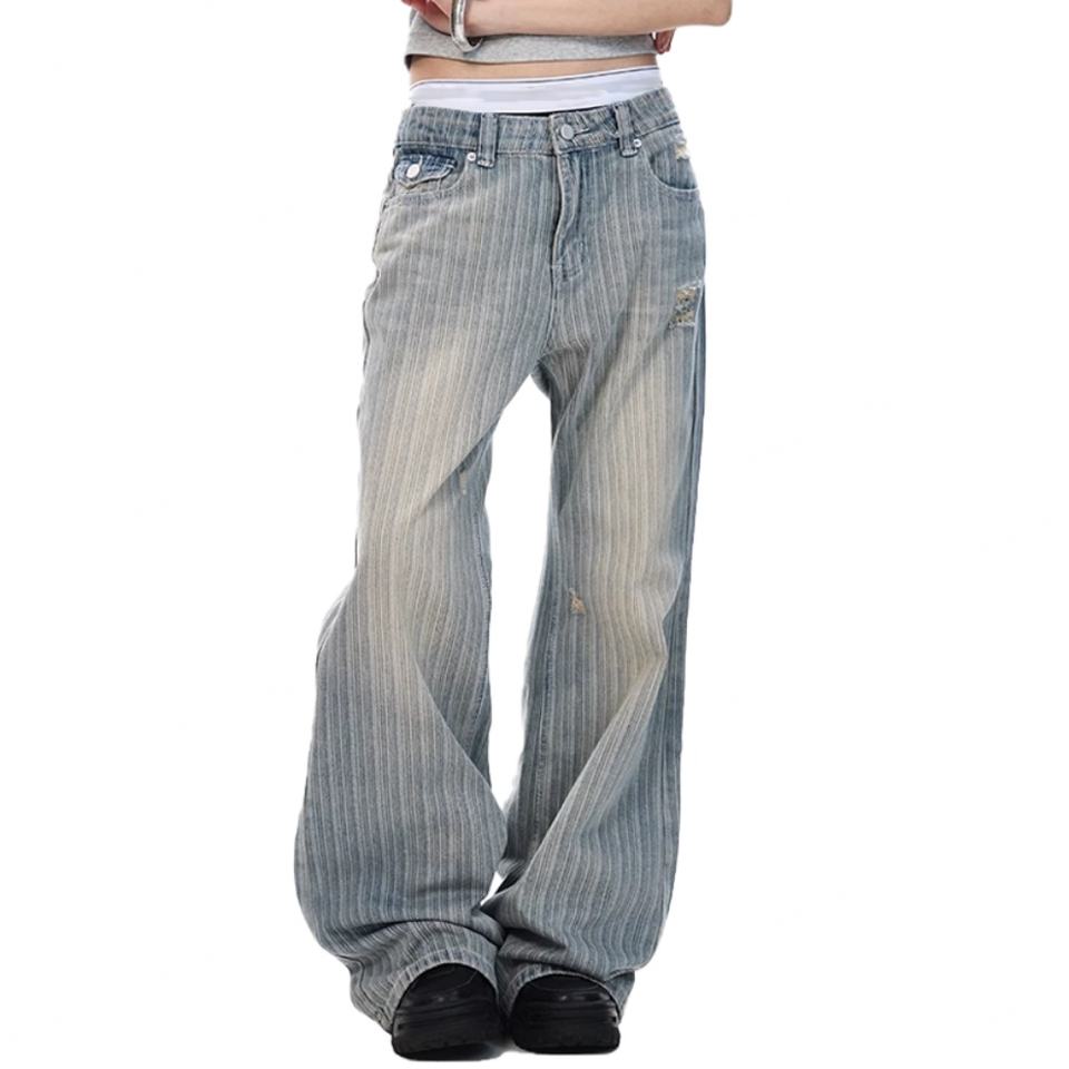 บริการขายส่ง OME กางเกงยีนส์แฟชั่นลำลองผู้ชาย ลายทางแนวตั้ง ทรงหลวม เอวสูง สีซีดจาง