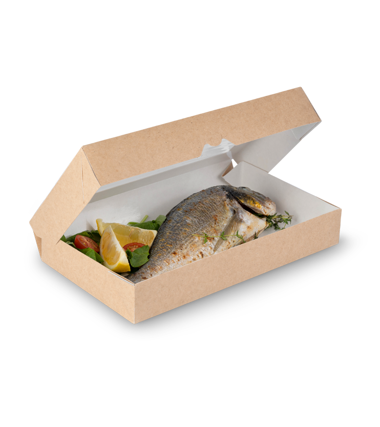 กล่องกระดาษคราฟท์สีขาว OSQ TABOX PRO 1450 สำหรับอาหารกลางวัน ป้องกันคราบไขมัน สำหรับร้านอาหาร HoReCa บริการจัดส่งแบบขายส่ง