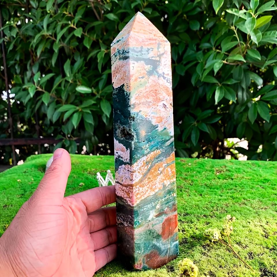 คริสตัลโฮล่า คริสตัลแจสเปอร์ธรรมชาติจากมหาสมุทร ลายเส้น ขนาด 9-10 ซม. ขัดเงา คุณภาพสูง แฟชั่นทันสมัย ตกแต่งบ้าน ฮวงจุ้ย